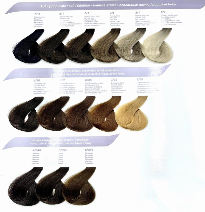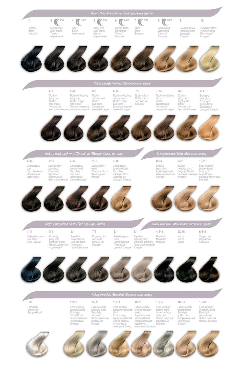 - Oznaczenia kolorów składają się z trzech cyfr: poziom koloru, dominujący refleks i refleks wtórny.